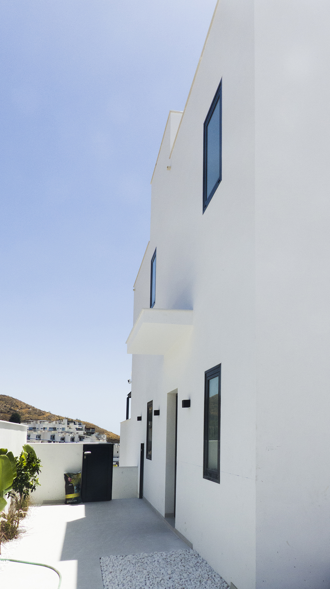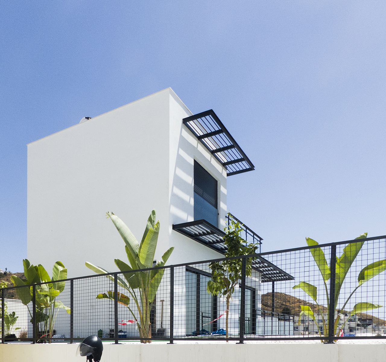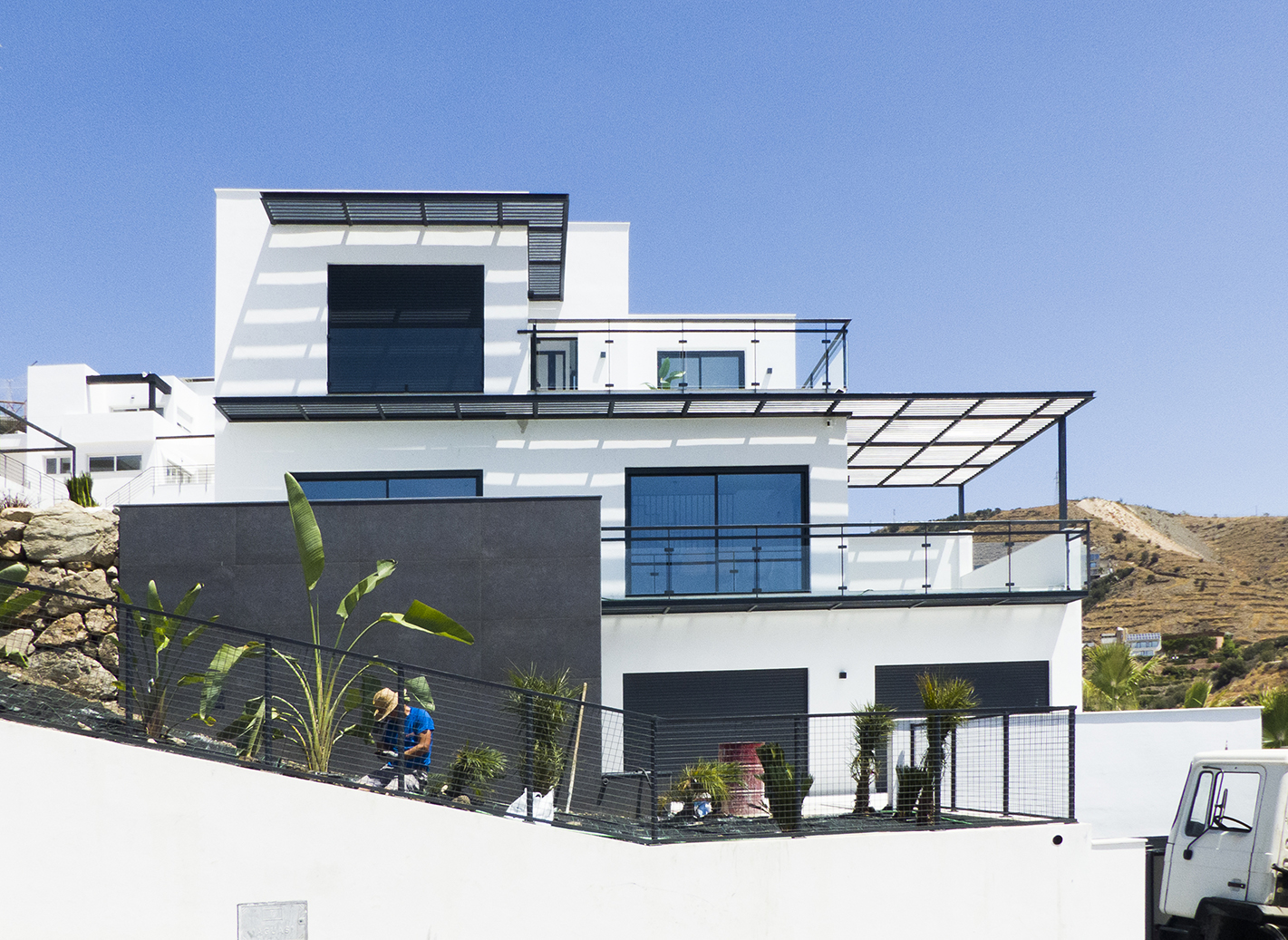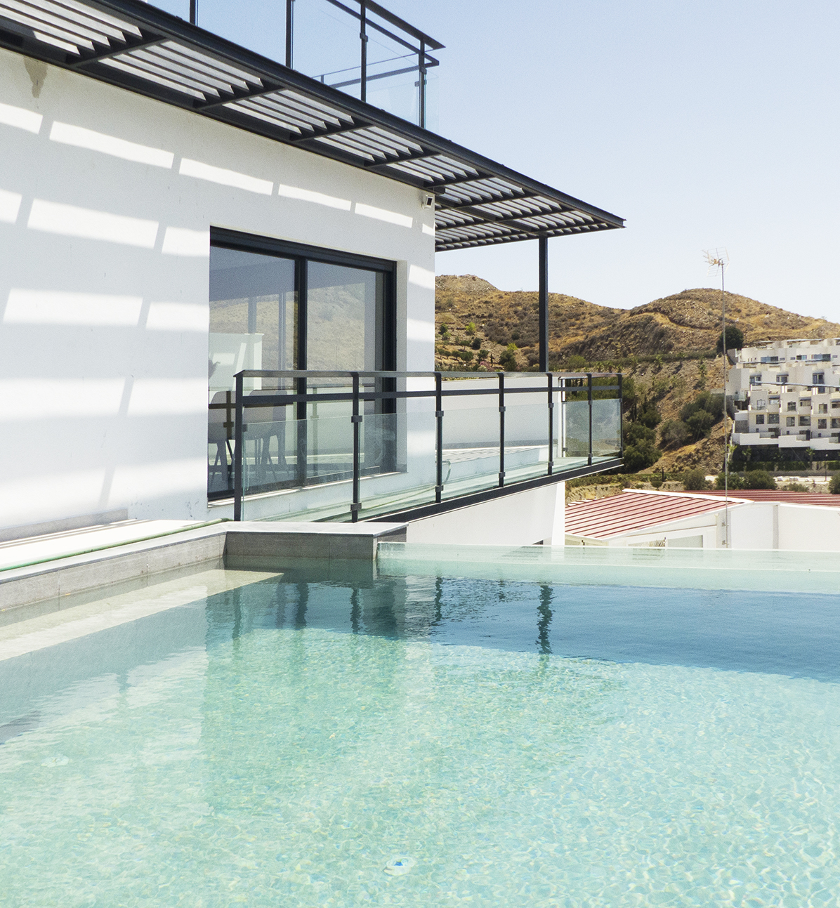 En la parte alta del Peñoncillo, con vistas espectaculares sobre el horizonte, la vivienda mira al sur y se escalona para aprovechar el desnivel del terreno, lo que genera un recorrido hacia el paisaje desde el interior de la vivienda. En la planta baja se crea un patio semiabierto que mira hacia la piscina y genera un espacio propio para los dormitorios principales. En la planta principal el salón comedor se vuelca hacia las terrazas.