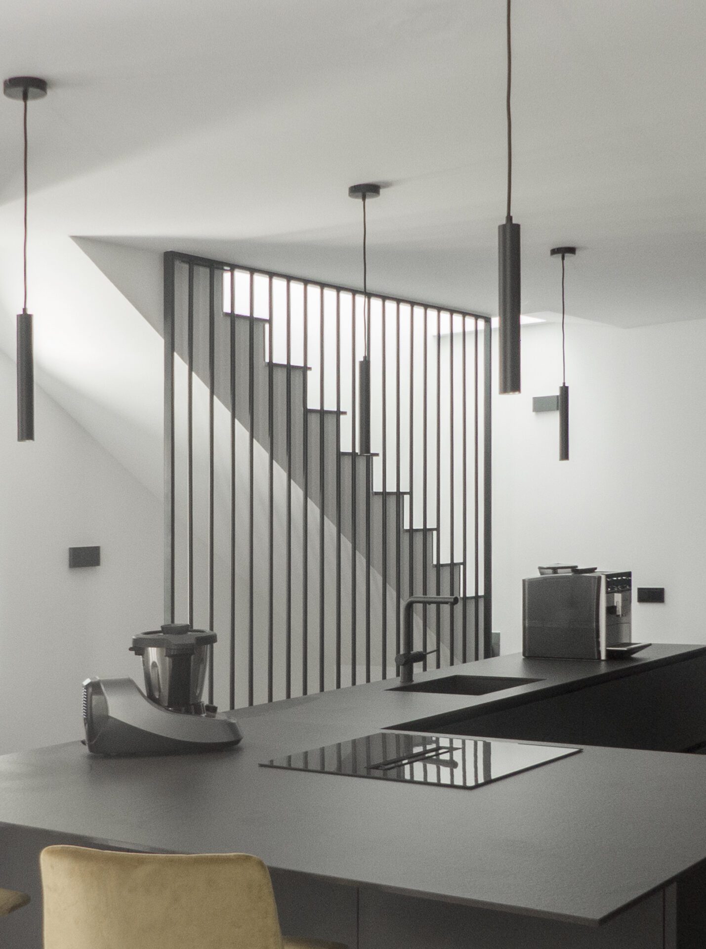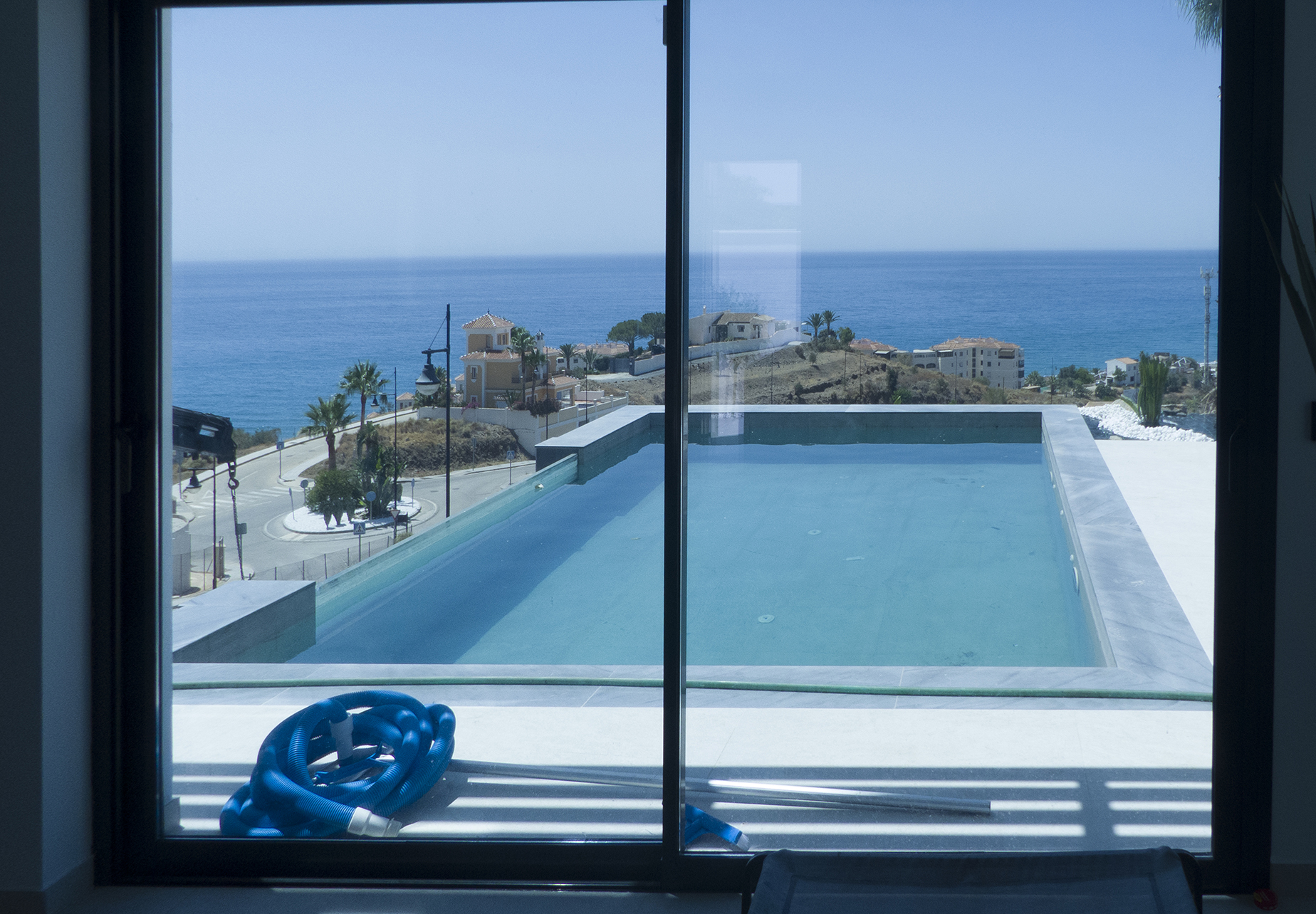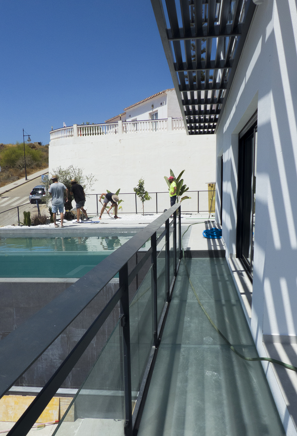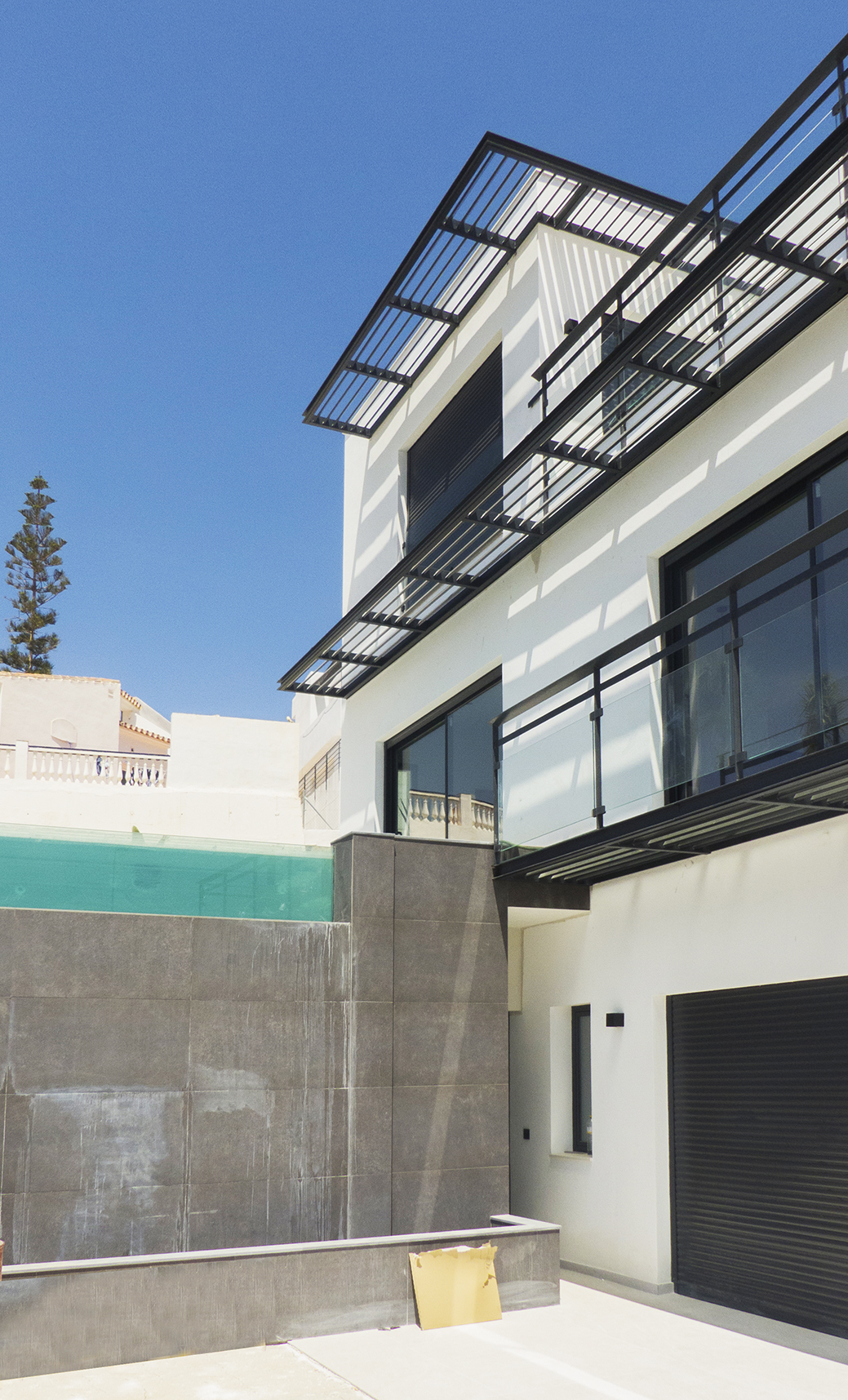 En la parte alta del Peñoncillo, con vistas espectaculares sobre el horizonte, la vivienda mira al sur y se escalona para aprovechar el desnivel del terreno, lo que genera un recorrido hacia el paisaje desde el interior de la vivienda. En la planta baja se crea un patio semiabierto que mira hacia la piscina y genera un espacio propio para los dormitorios principales. En la planta principal el salón comedor se vuelca hacia las terrazas.